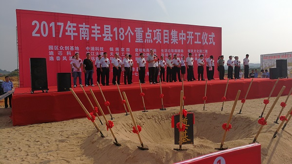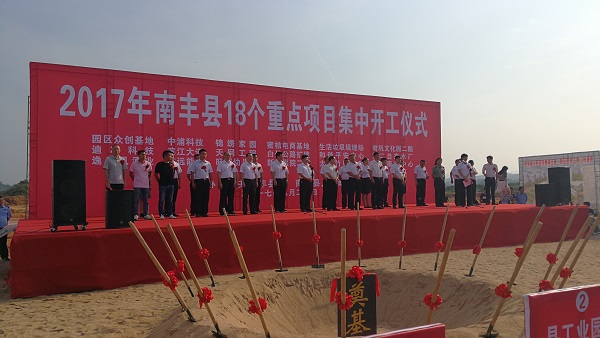 為進(jìn)一步營造濃厚的項(xiàng)目建設(shè)氛圍,推動(dòng)縣域經(jīng)濟(jì)趕超發(fā)展,2017年8月20日上午8:28,南豐縣18個(gè)重點(diǎn)項(xiàng)目集中開工儀式在黃金工業(yè)園區(qū)舉行。撫州市副市長徐國義出席儀式并講話;縣委書記吳自勝宣布開工并講話;縣委副書記、縣長樂啟文致辭。隨后,南豐曠遠(yuǎn)能源有限公司、城區(qū)飲水工程和園區(qū)眾創(chuàng)基地的代表分別代表企業(yè)發(fā)言。